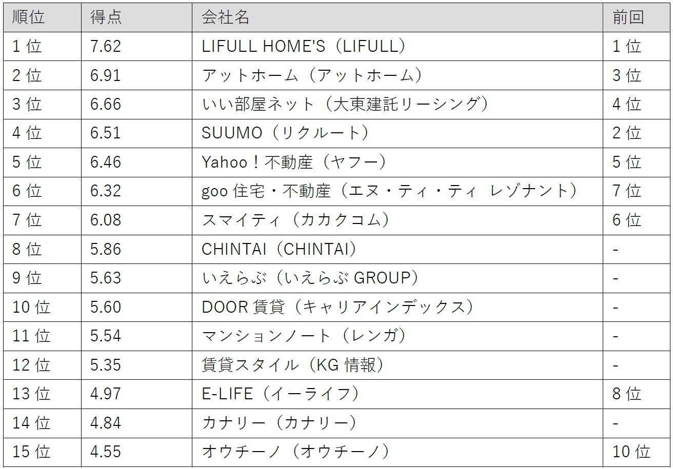 「Gomez賃貸不動産情報スマホサイトランキング」の結果は、以下のとおりです。