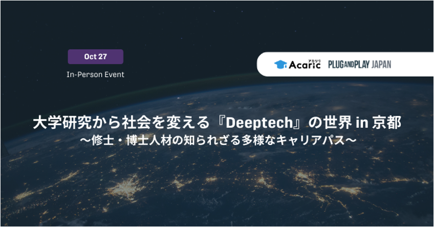 【Plug and Play Japan × アカリク|10/27(金)京都開催】修士・博士学生・研究者向け『Deeptech』の可能性と多様なキャリアを知るイベント
