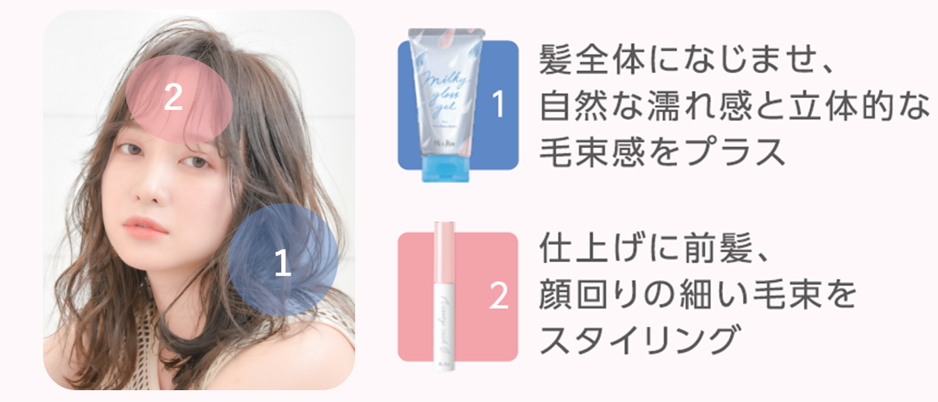 自然なニュアンス・動きを演出し、奥行きのある立体的なヘアスタイルに。また、なじませやすいミルクinジェルでバリっと固めずにキープします。