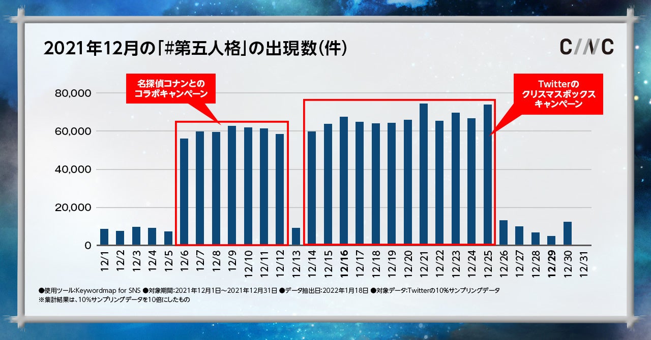 - Twitter上で盛り上がった要因は「名探偵コナンとのコラボ」「Twitter社のクリスマスボックスキャンペーン」