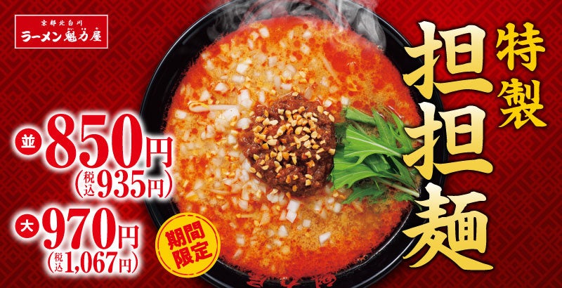 京都北白川ラーメン魁力屋をチェーン展開する株式会社魁力屋(https://corp.kairikiya.co.jp/ 本社:京都市中京区、代表取締役社長:藤田 宗、以下魁力屋)は、2024年5月15日(水)より、「特製担担麺」を期間限定で販売開始いたします。