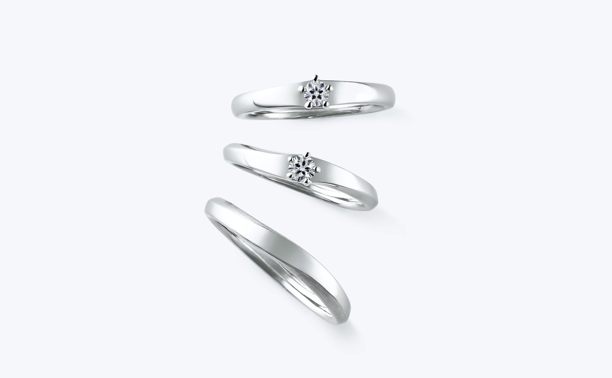 そんな大切な気持ちを、一輪の桜に見立てたさくらダイヤモンドにのせて結婚指輪にあしらいました。