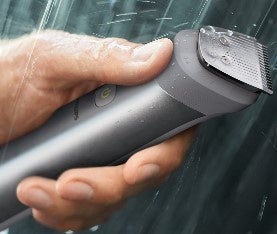 フィリップスの電動シェーバーで人気の技術をグルーミング製品にも初めて搭載しました。毎秒125回ヒゲの密度を感知し、ヒゲの濃さに合わせて自動でパワーを調節することで、濃いヒゲや長さのあるヒゲも刃の回転数を落とすことなく剃り切ります。