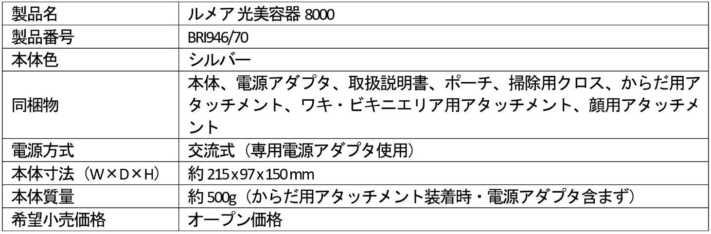「ルメア 光美容器 8000」の主な製品特長