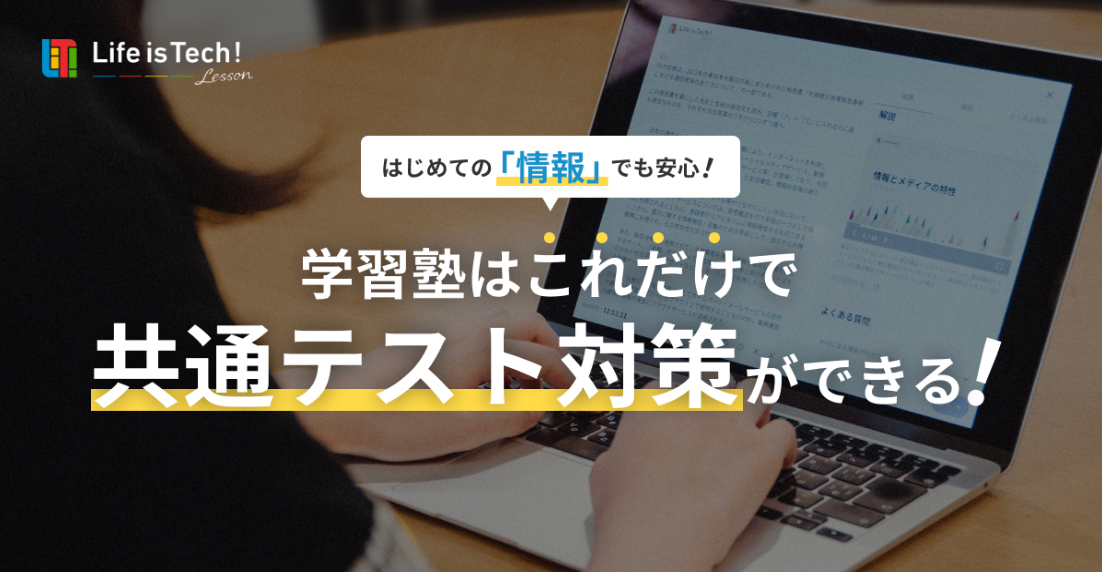 ライフイズテックでは、中学・高校向けにプログラミング学習用EdTech教材「Life is Tech ! Lesson(ライフイズテック レッスン)」を提供しています。この「つくる」ことで学びながら体系的に知識も身に付くEdTech教材開発のノウハウを生かし、共通テスト「情報」を本格的に学べるAIドリルを開発し、学習塾向けに展開しています。