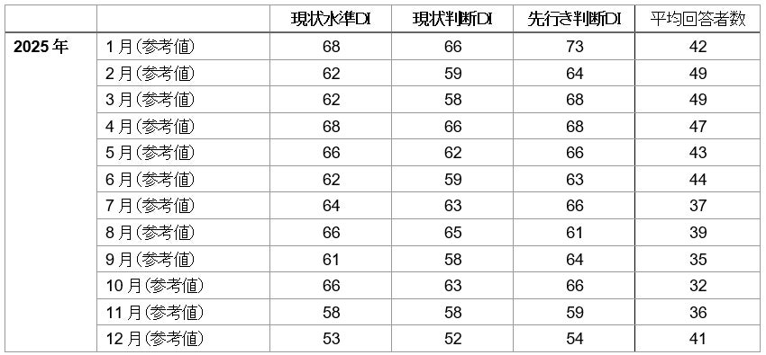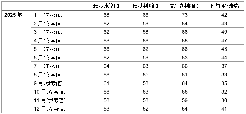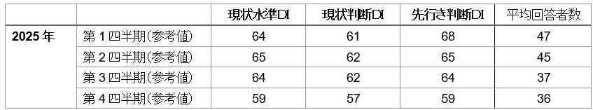 ・現状水準DI※1 は、前四半期差で-5ポイントの59とやや低下した。