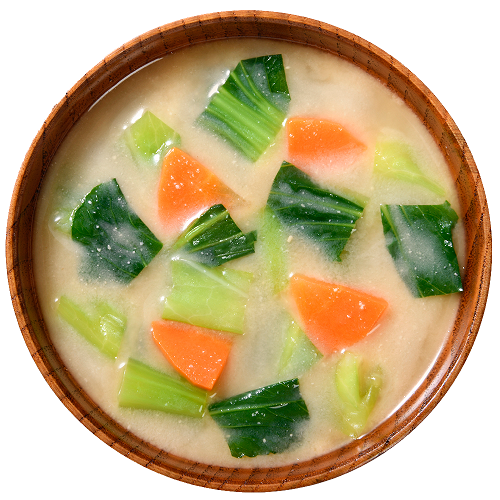 具はキャベツ、小松菜、にんじんの3種類。野菜の甘みを感じられるように、すっきりとしたやさしい味わいの白系の味噌󠄀で仕上げました。