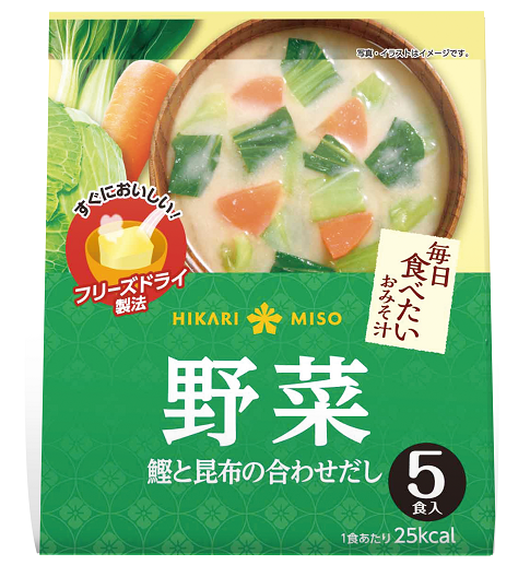 しっかりとした具材感を楽しめる人気のフリーズドライみそ汁シリーズに、新ラインナップ! 『毎日食べたいおみそ汁 あげなす5食』『毎日食べたいおみそ汁 野菜5食』を発売