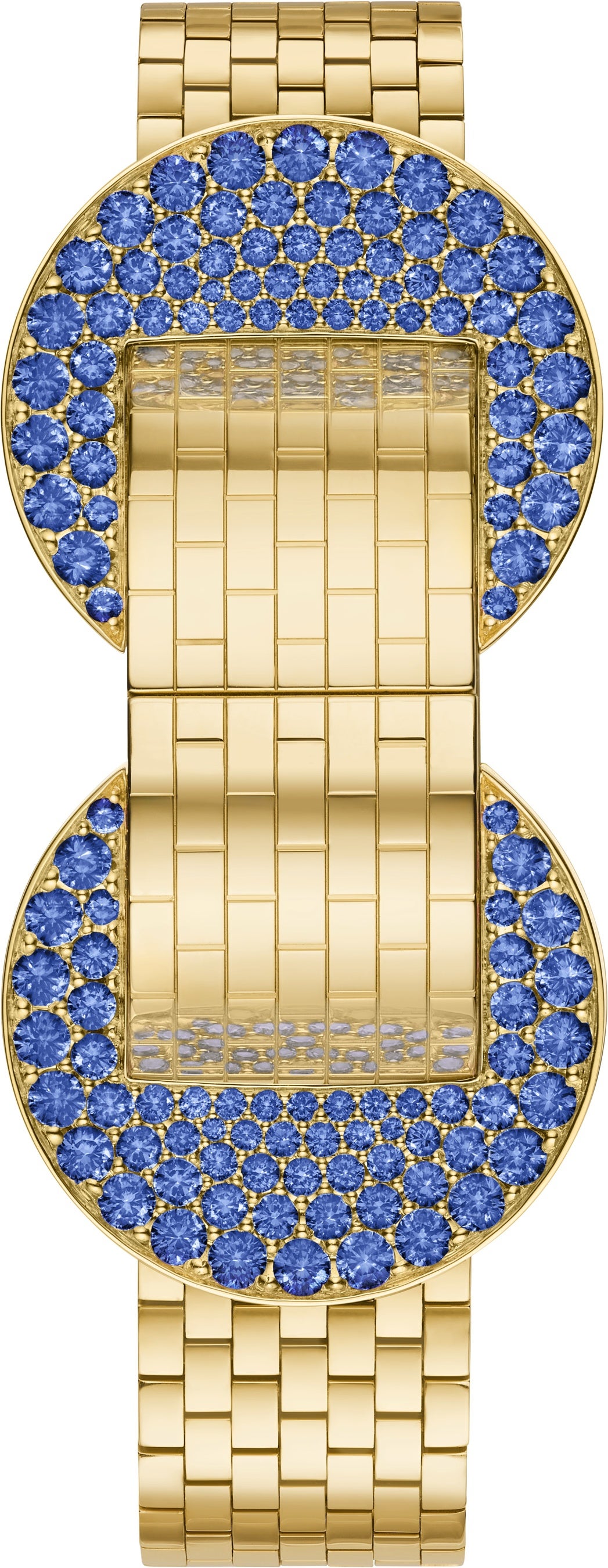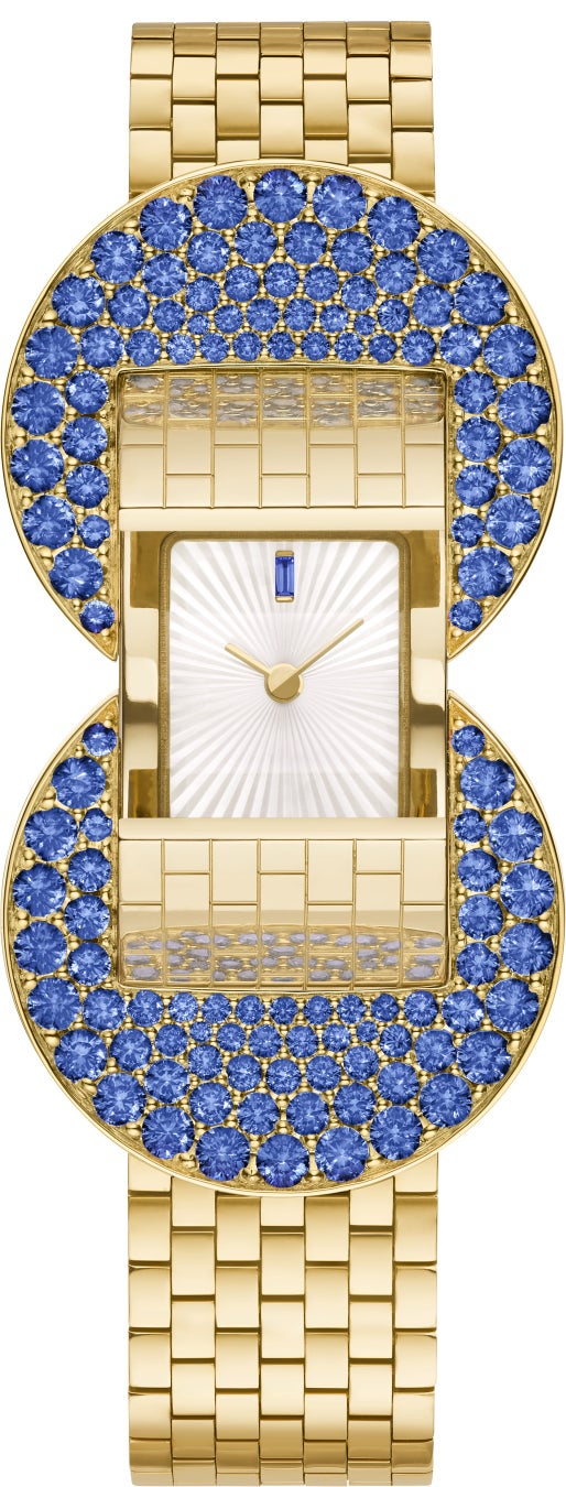サファイアをあしらった新作のルド シークレットウォッチは、1949年のモデルを再解釈し、この伝統を継承しています。ブレスレットは、手作業で丹念に組み立てられ調整されたミラーポリッシュ仕上げのイエローゴールド製“ブリケット” リンクで構成され、手首を優しく包み込みます。しなやかなメッシュ状に連結されたリンクは、まるで繊細に編み込まれているかのようです。陽光を思わせるイエローゴールドの輝きとサファイアの鮮やかなブルーが、コントラストを成しながら調和を奏でています。ゴールドの表面にセットされたサファイアは、ふくよかな三日月のモチーフを形作っています。
