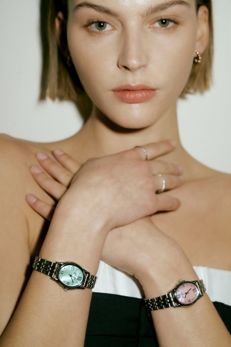 ウォッチコレクションは、クラシックでレトロなデザインから着想を得ています。それぞれの時計は、様々な年代のデザインやファッション、その時代の空気感をデザインに反映させています。完璧なタイムピースをご提供するために、1つのコレクションをローンチするのに、約1年半もの時間をかけてリサーチ・デ ザイン・開発を行っています。素材はステンレススチールとサファイアガラスを採用し、手の届く価格でありながら、高級感あふれる製品をお届けします。