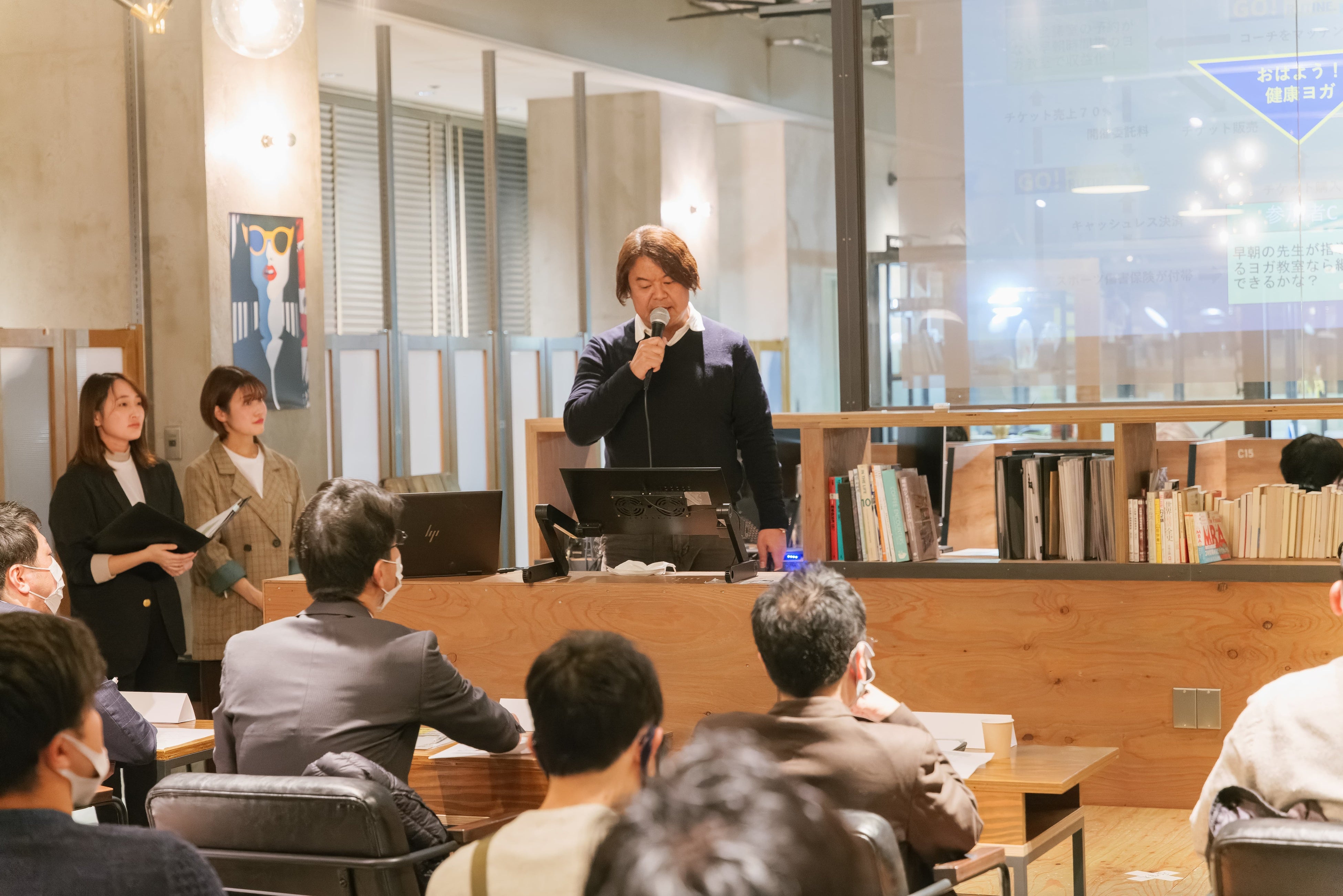 自身が水泳のコーチを務める事業の中で、コロナ禍以降朝の時間帯に受講したい会員が増加したという実績から今回のビジネスプランが生まれた。欧米ではジムに行くのは出勤前が一般的だが、日本の多くの施設では早朝の時間帯にスタッフが常駐していることはほとんどなく、レッスンなどは受けられない状態。空きスペース・時間のある「施設」、レッスン指導を行う「コーチ」、レッスンを受けたい「参加者」、この3者を繋ぐプラットフォームを作ることで、健康増進産業における長年の課題の解決に繋げていきたいとプレゼンテーションした。