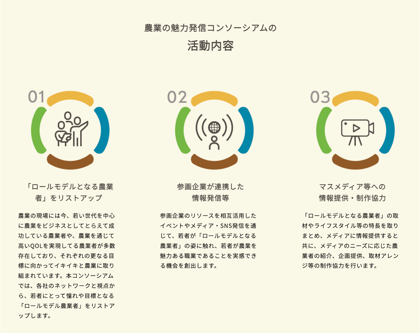 - 農水省とともに行う「農業の魅力発信コンソーシアム」とは