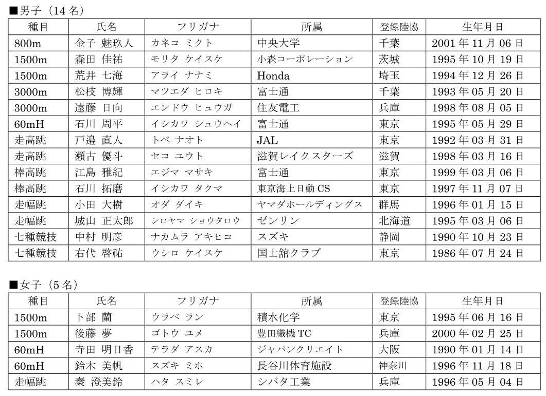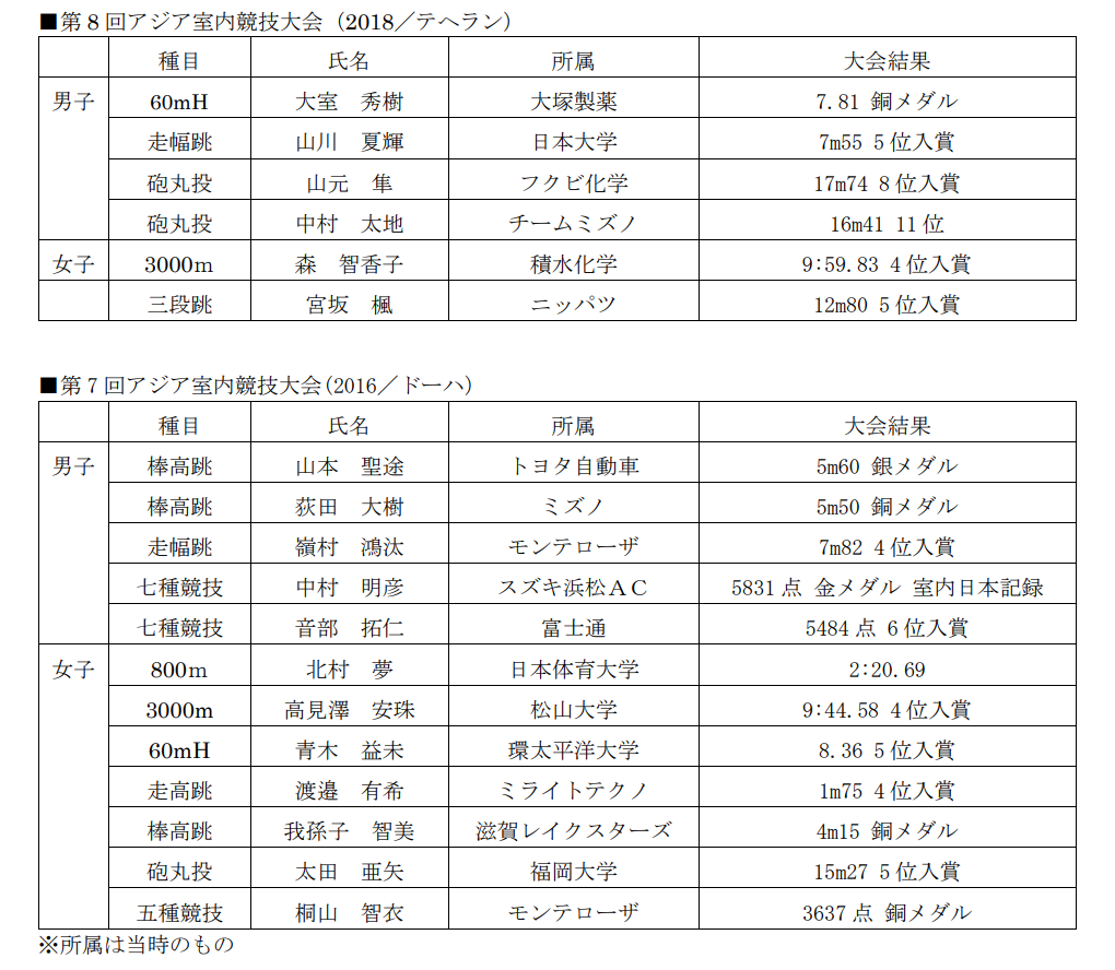 本年2月11日(金)から13日(日)までヌルスルタン(カザフスタン)で開催される「第10回アジア室内陸上競技選手権大会」に派遣する日本代表選手を決定しましたことをお知らせします。