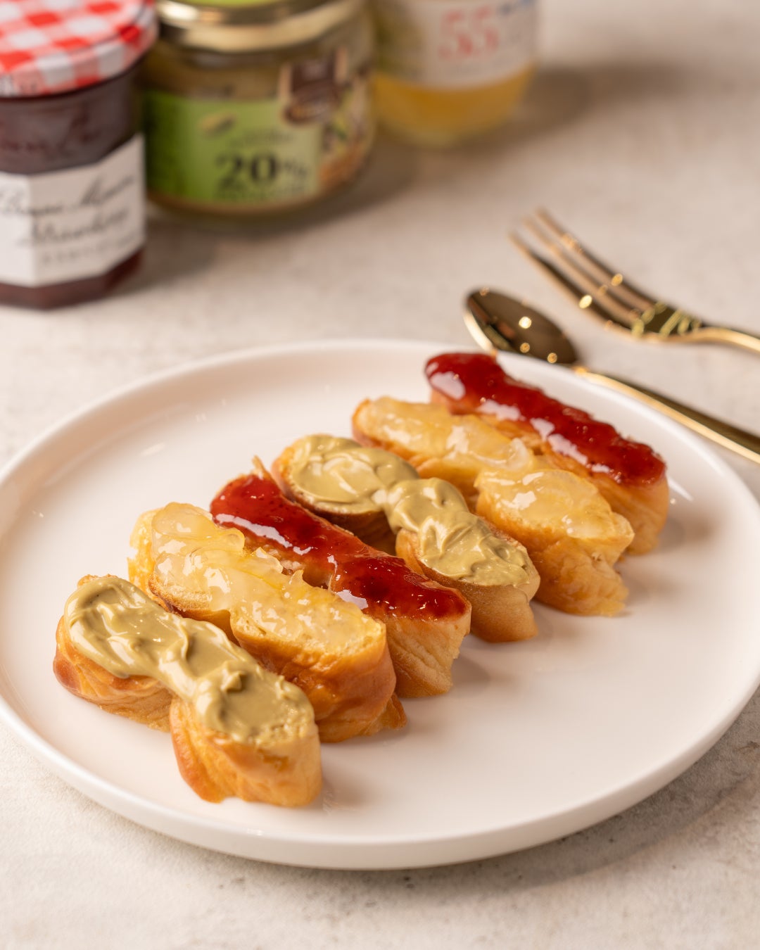 3ジャムを塗ったパンの色味が交互になるよう並べる。