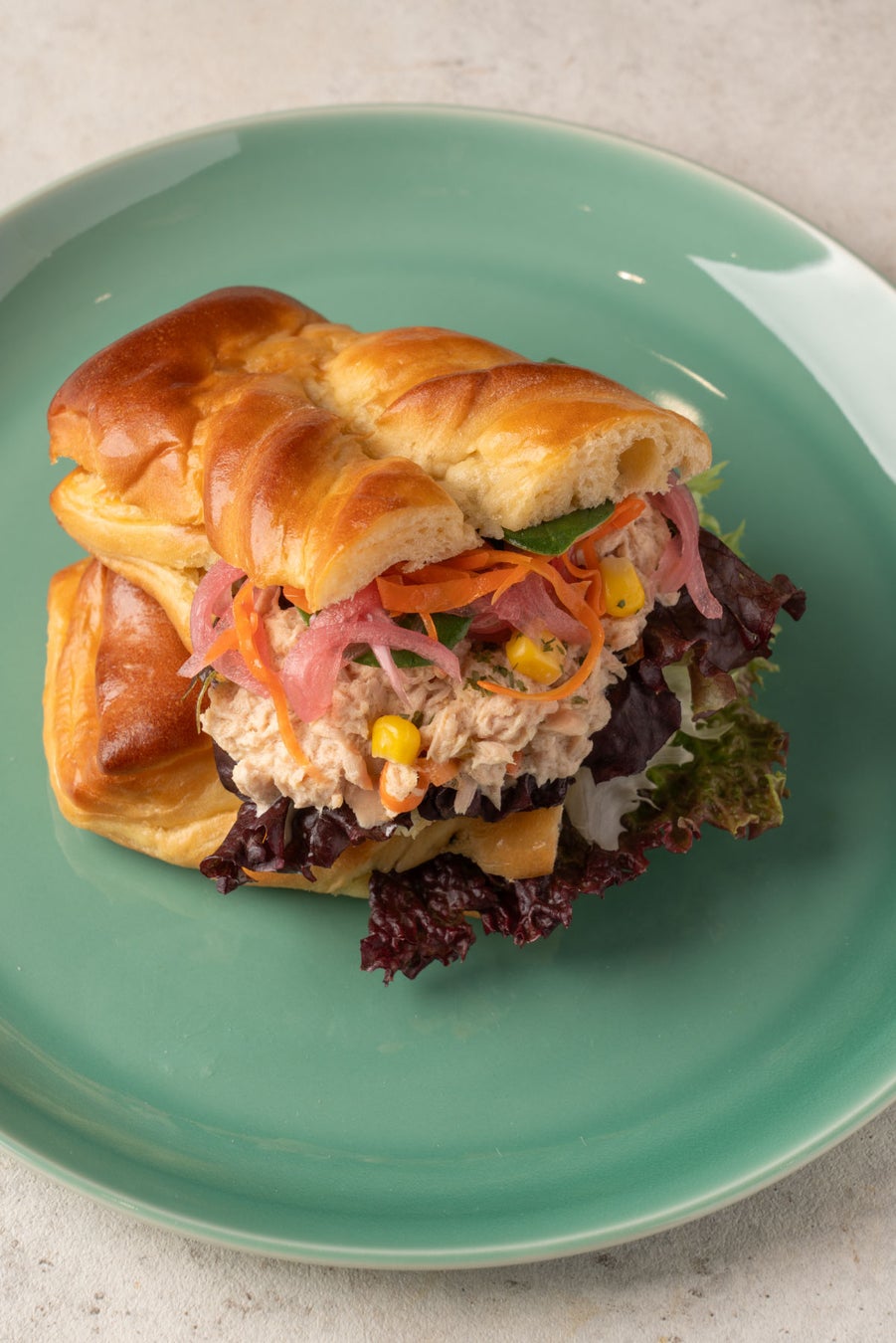 4サニーレタスを切り込みを入れたパンに挟み、その間に3で作ったツナマヨをお好みの量入れる