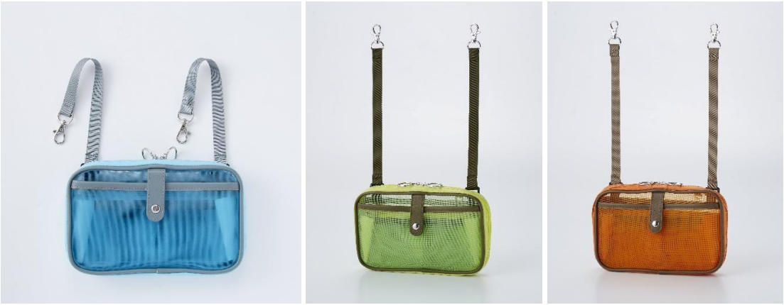財布やカギ、スマホなど、大切なもののバッグの中での迷子を防ぐメッシュ素材のバッグインウォレット です。大きな金具でファスナーを引くと、がばっと開いて中が見やすいじゃばら型になっています。デザ インは〈ライトブルー〉〈ライトグリーン〉〈ライトオレンジ〉の3種類です。ふだんから大切なものを まとめて入れておけば、バッグを変えても忘れ物を防ぐことができます。