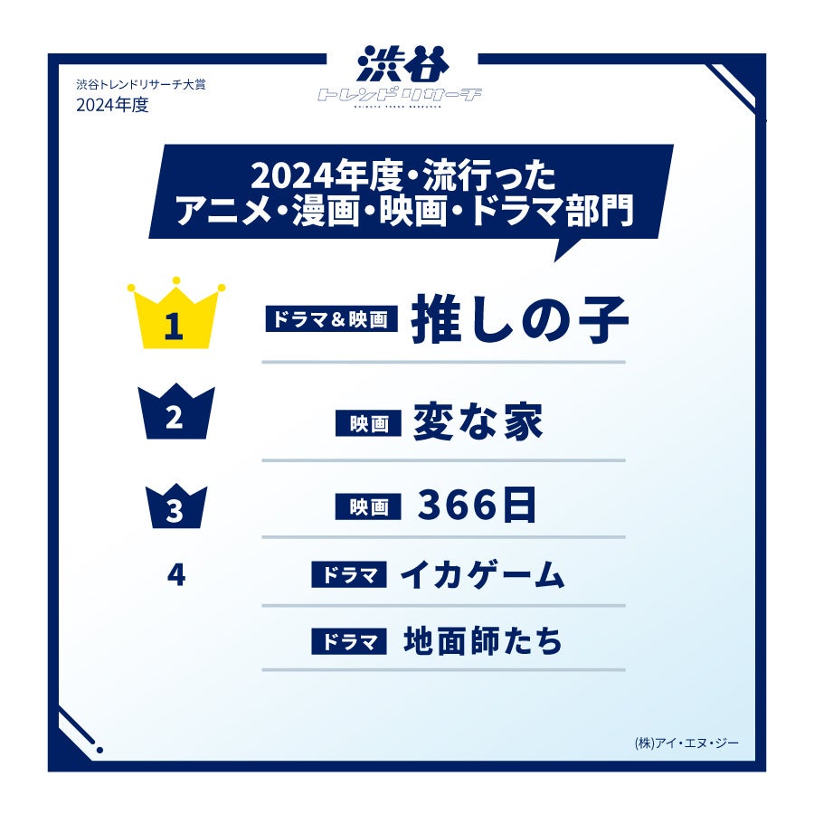 ❚ 2024年度高校生が選ぶ渋谷トレンドリサーチ大賞・アニメ・漫画・映画・ドラマ部門1位「推しの子」