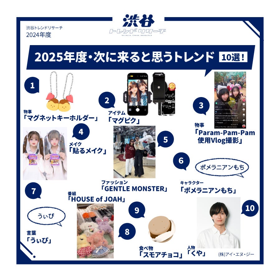 渋谷トレンドリサーチは、2024年度に回収したデータに基づき、渋谷を拠点に活動しているINGteens高校生メンバーの生の声を反映し、最新の2024年4月~2025年3月に流行った言葉や人、ファッションアイテムやコスメまで全10項目を調査しました。