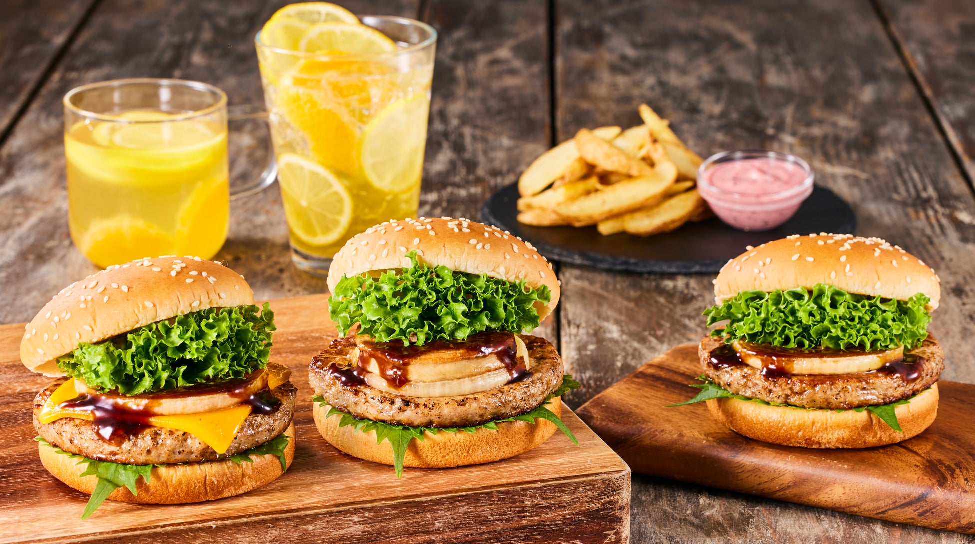 フレッシュネスでは現在、[世界のグルメを大人の本格バーガーに]を年間テーマに、期間限定バーガーを販売。今回は日本をテーマに、和食材を使ったハンバーガー2種と、ポテト、ドリンクを新発売いたします。