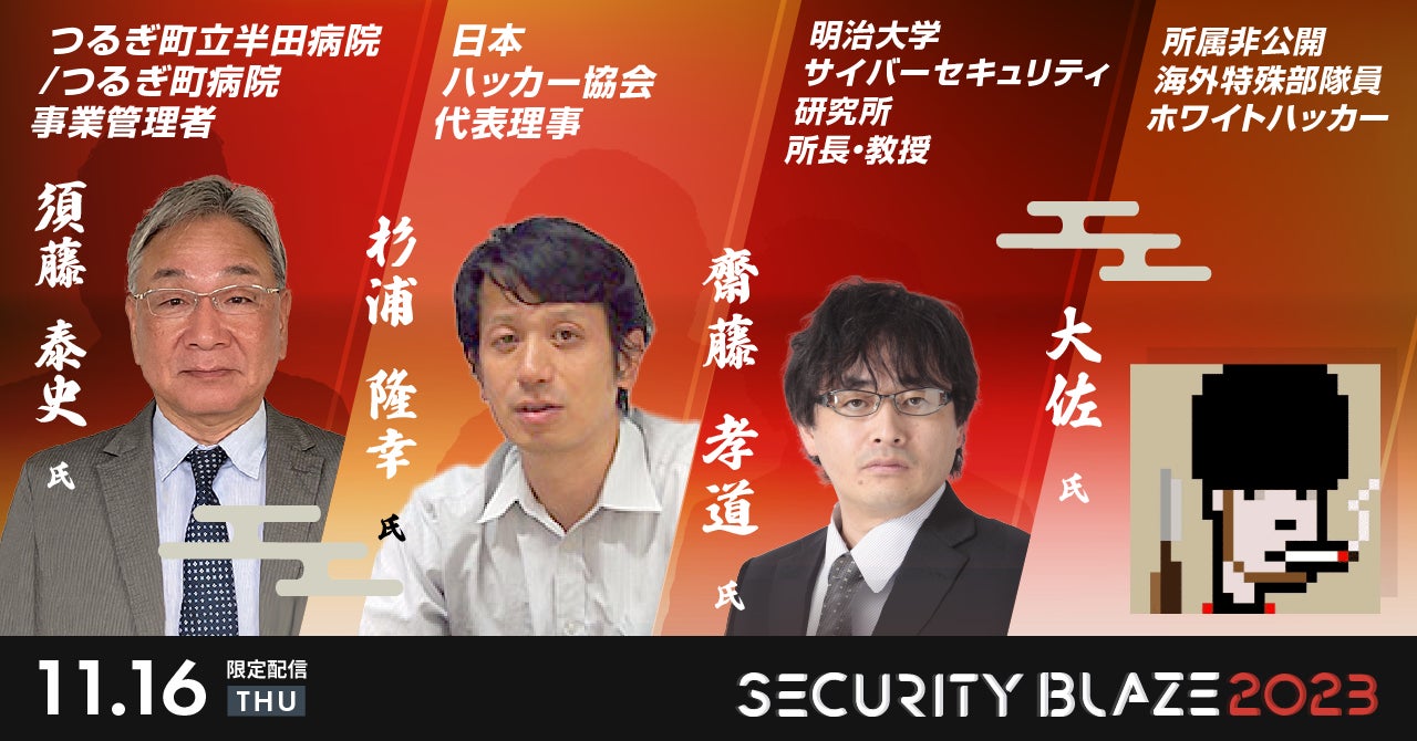 「Security BLAZE2023」は、日本を代表するサイバーセキュリティの専門家や企業が一堂に会し、サイバーセキュリティの最新動向や脅威への対策などを中心に講演を行う、日本最大級のオンラインセキュリティカンファレンスです。
