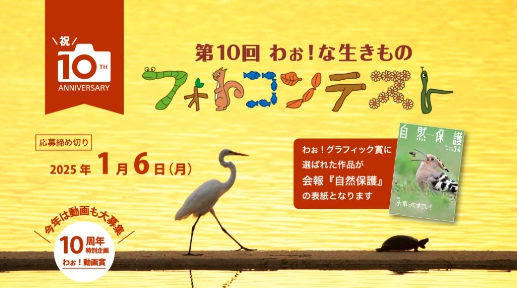 ●日本自然保護協会は、ソニーグループ株式会社と協働する「わぉ!わぉ!生物多様性プロジェクト」で「第10回わぉ!な生きものフォトコンテスト」を開催します。