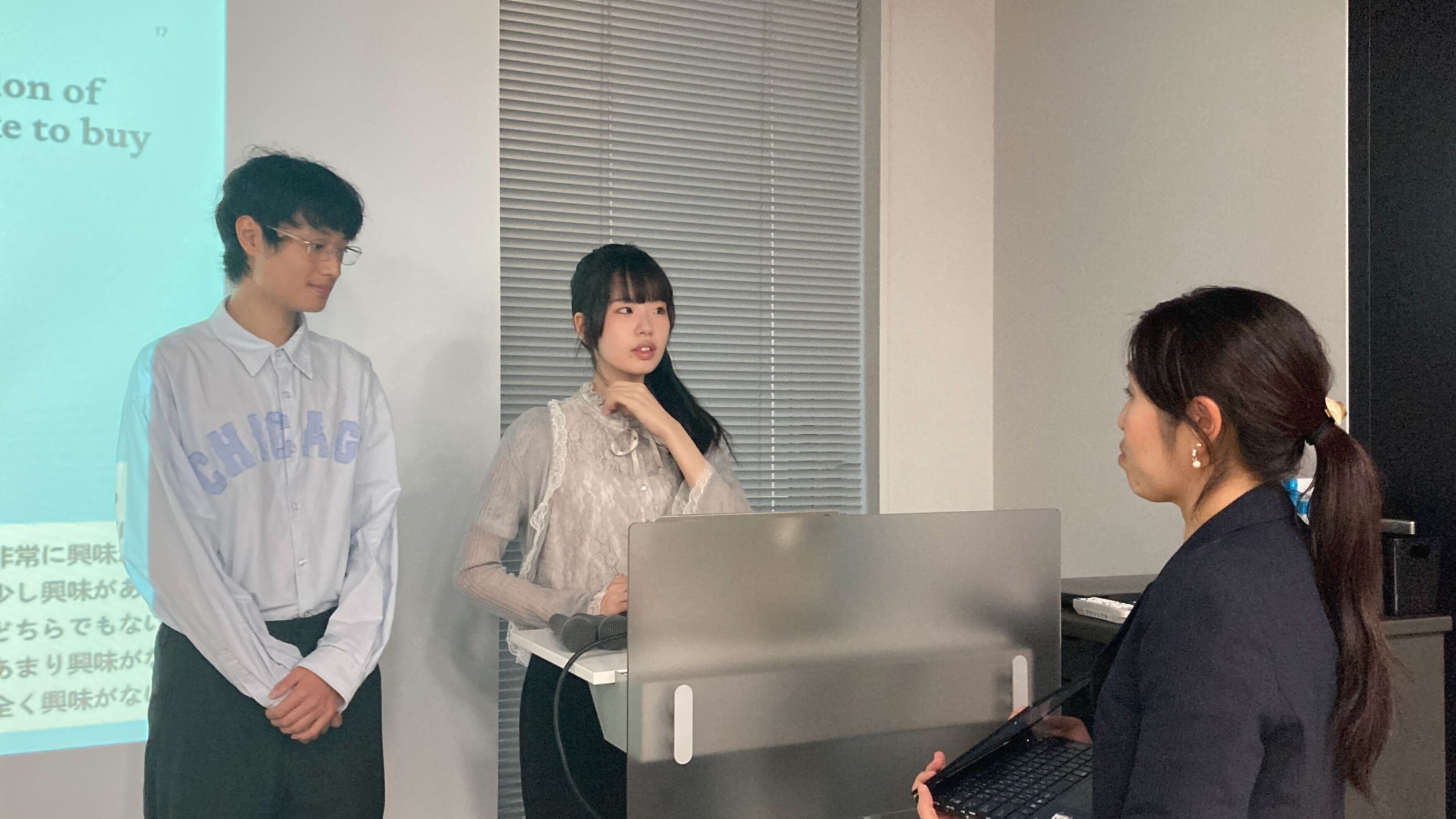 学生チームは、識学のコンセプトが若者世代にどう響くかを探る調査を行い、その結果に基づいた口コミで認知度を広めるためのマーケティング戦略を識学の社員に向けて提案しました。