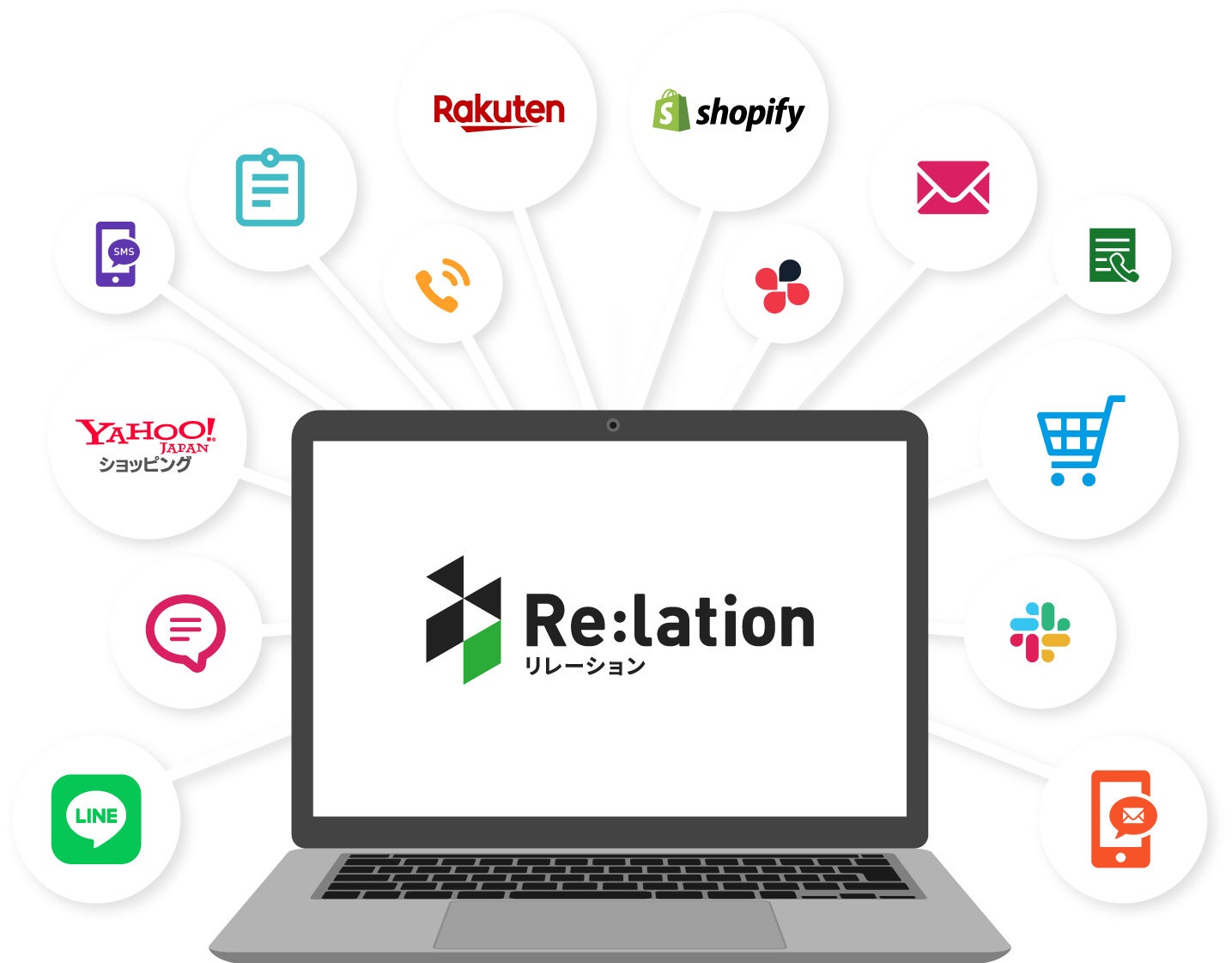 『Re:lation(リレーション)』は、複数の問い合わせ窓口を一元管理し、チームで共有できる顧客対応クラウドです。メール、電話、チャット、LINEなど多様化するコミュニケーションサービスを一つの画面で扱えるため、顧客との接点が増え複雑になった問い合わせを簡単に一元管理できます。