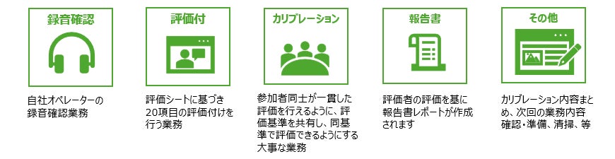 障害者は、電話応対者の録音評価を行い、”応対品質向上業務” に従事します。評価シートを元に、評価付けを行っていくことで、毎月レポートが作成されます。