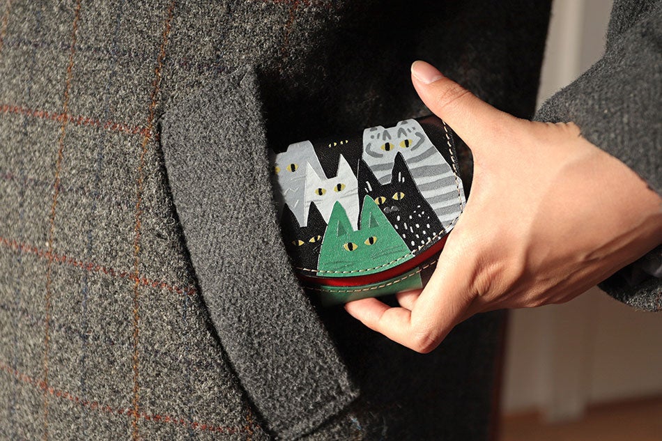 ネコ好きのためのミニ財布!ネコ好き革職人とネコ好きデザイナーがコラボ。「夜空とネコ」がデザインされた本革のミニ財布が誕生。