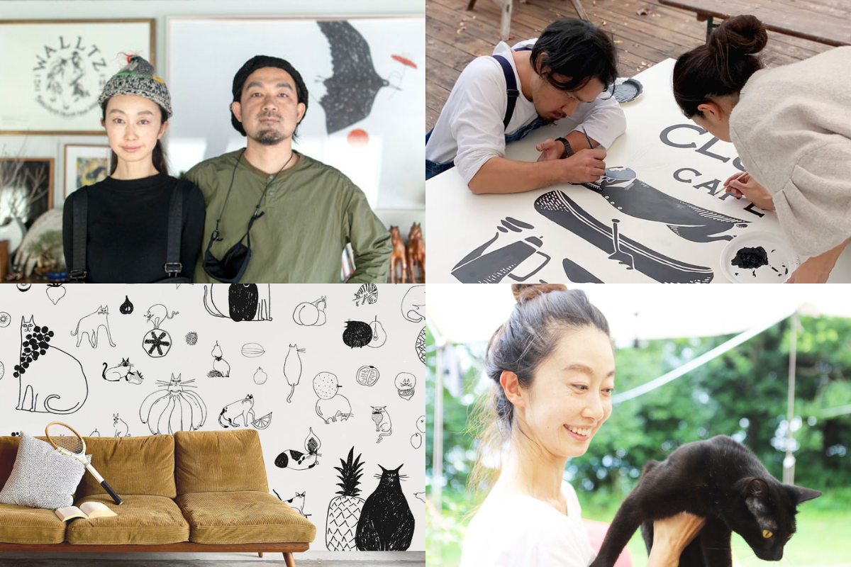 猫をモチーフにしたデザインも多く手がけ、魅⼒的なアートワークで、数多くのお店やホテルなどのアートビジュアルやロゴをデザイン。