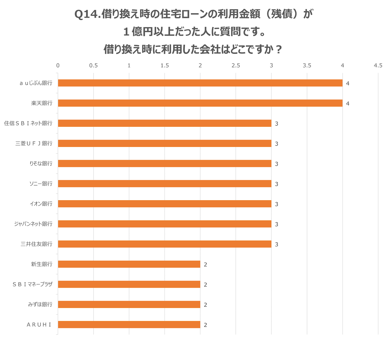 Q14.借り換え時の住宅ローンの利用金額(残債)が1億円以上だった人に質問です。借り換え時に利用した会社はどこですか?