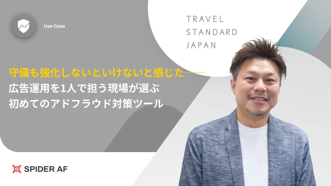 「Spider Labs」)は、Web広告における「不正クリック」や「偽のCV」など、広告費を消耗させる不正=アドフラウドへの対策として、アドフラウド対策ツール「Spider AF(スパイダーエーエフ)」を導入したトラベル・スタンダード・ジャパン株式会社(東京都豊島区、代表者:横治 祐介)の活用事例を公開しました。