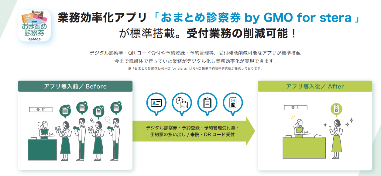 - 付帯アプリ「おまとめ診察券by GMO for stera」でできること
