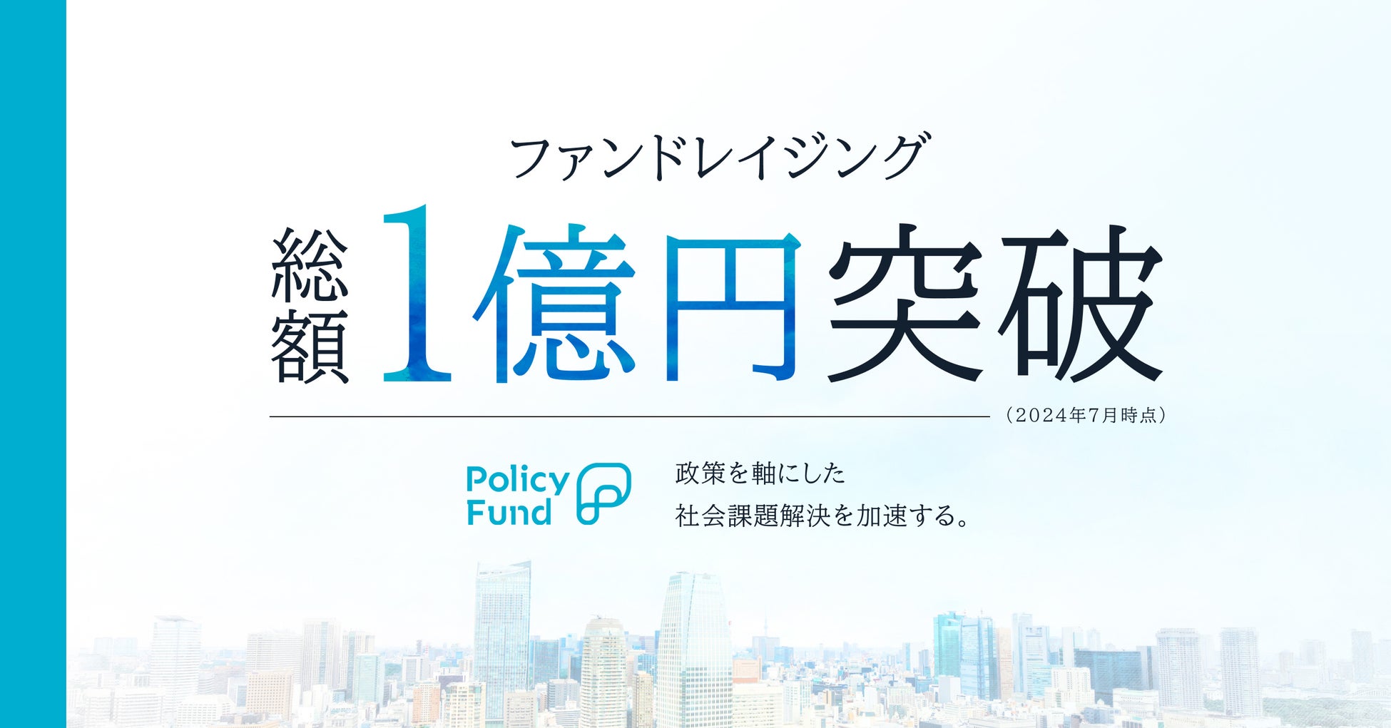 株式会社PoliPoli(所在地:東京都千代田区、代表取締役:伊藤和真)は、政策を軸にした社会課題解決を加速するための寄付基金『Policy Fund』のファンドレイジング総額が1億円を突破したことをお知らせします。