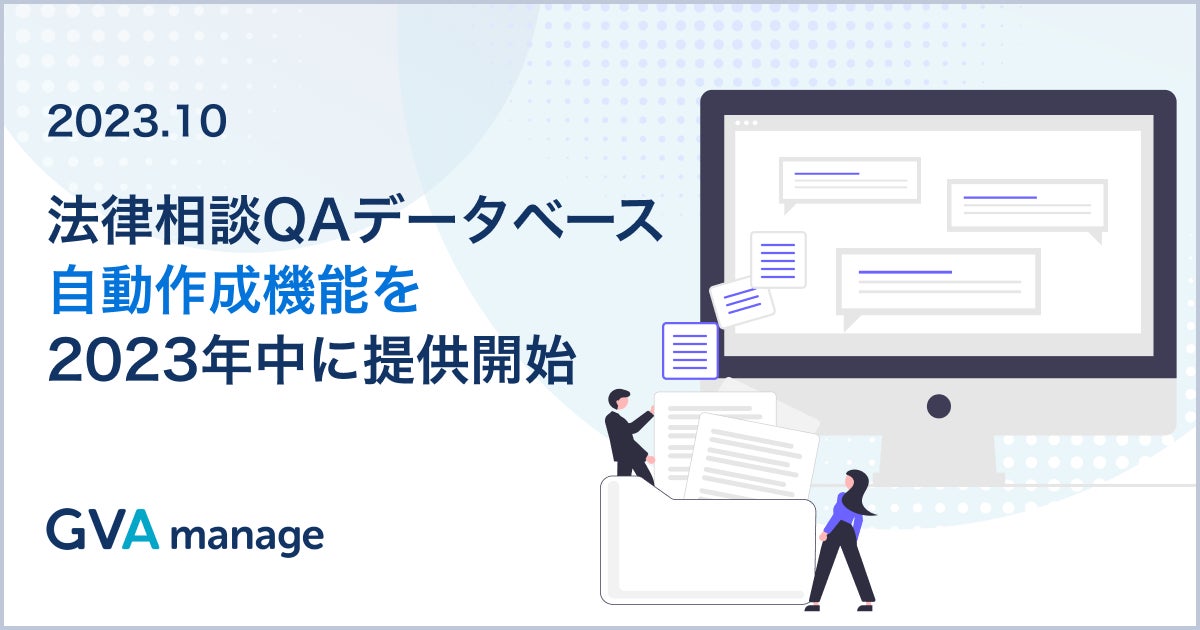 GVA TECHが「ChatGPT」を活用した法律相談QAデータベースの自動作成機能を2023年中に提供開始、AI法務チャットボットから呼び出しが可能に。