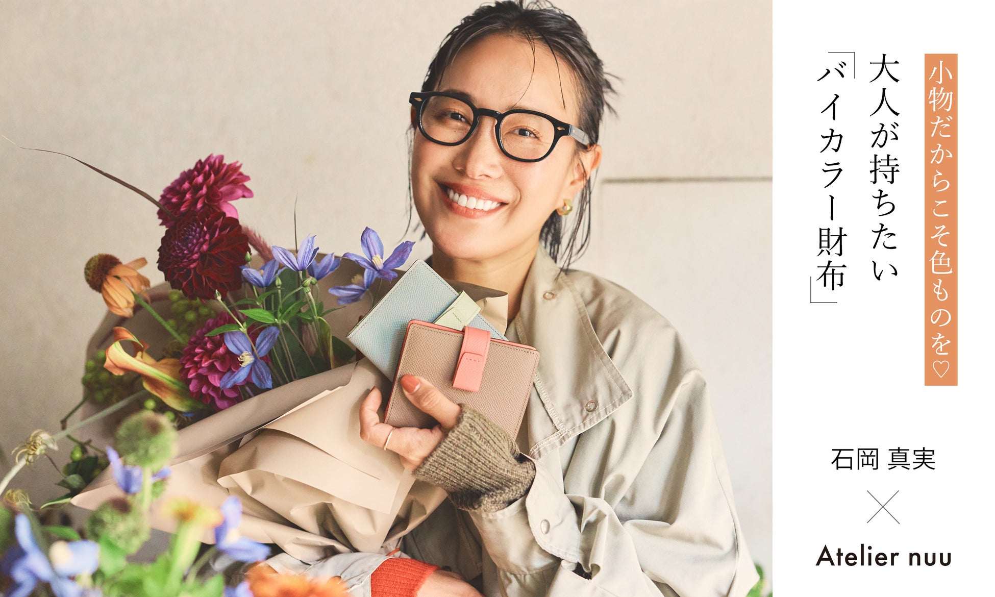 バイカラーのコンビネーションが特徴の二つ折り財布。石岡 真実さんのこだわりをふんだんに詰め込んだ、特別なカラーの2色展開です。