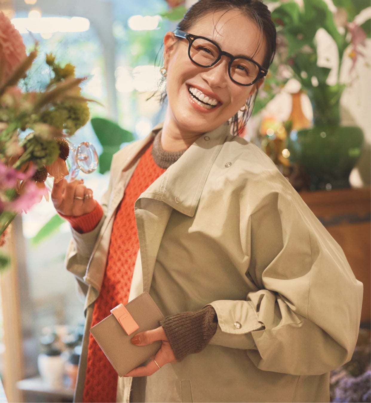 「小物だからこそ色ものを…♡年中、季節問わずに持てる可愛い配色が完成しました。キャッシュレス決済が普及して、お財布を持たない方も増えてきました。わたしも一度、カードケースくらい小さなものにシフトしましたが、やはり現金が必要になる機会はまだまだあって、小さなお財布ではお会計がスマートにできない!だからといって二つ持ちは荷物が増える…。やっぱりお財布は大事だと気づきました。今回のコラボで、コンパクトなのにストレスがない理にかなったお財布に出合いました。手で持った時のフィット感。お札と、小銭、カードが、同じ向きで取れる。お会計もすっとスマートにできたとき、これこれ〜と思いました。是非この使いやすさ、実感して頂きたいです。」