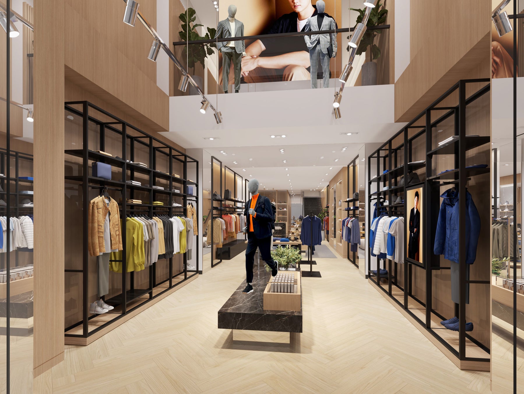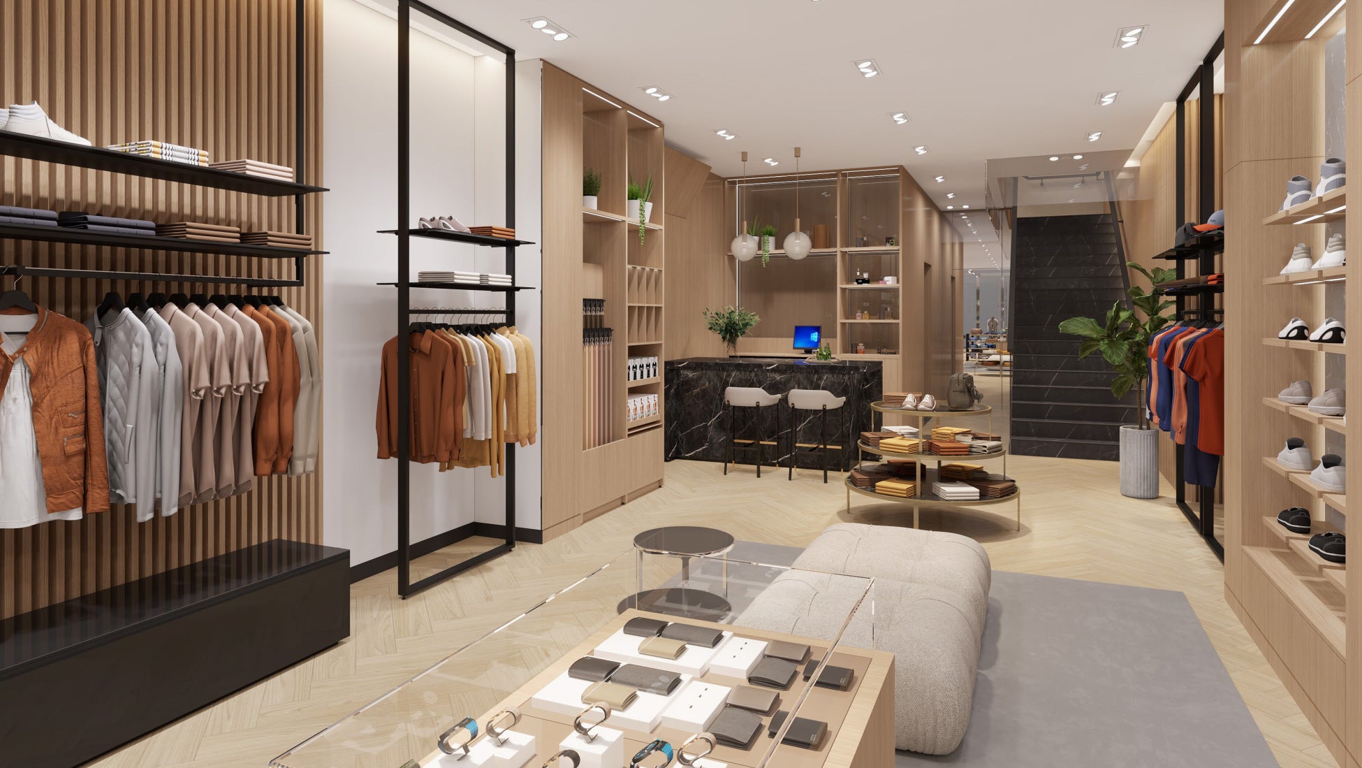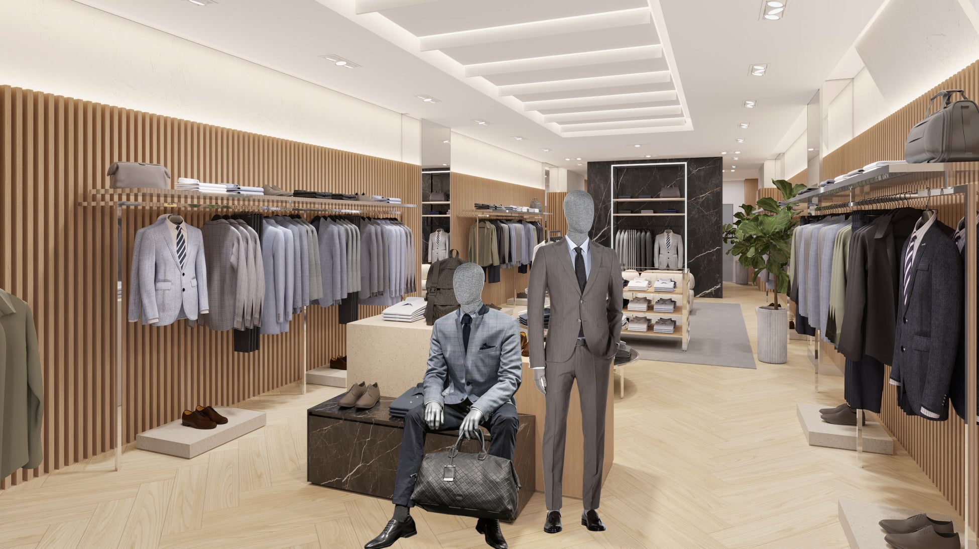 全体的なデザインは、大胆さと現代的な視覚的アプローチを強調しています。開放的なファサードは、店内を直接見渡すことができ、お客様をBOSSの世界へと誘います。店内はエレガントで現代的なデザインが特徴で、次世代のショッピング体験を提供します。店頭には、BOSSの最新キャンペーン動画を映し出すインパクトのある大型LEDファサードが設置されており、温かみのある木製のフローリング、トラバーチン、メタリックシルバーの什器に加え、黒の大理石や光沢のあるマテリアルを組み合わせることでビジュアルアイデンティティが巧みに融合しています。BOSSの世界に浸りながら、魅力的な環境でショッピングをお楽しみいただけます。