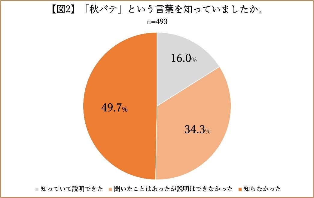 秋バテがどれだけ知られているかを確認すると、61.6%の方々が夏から秋に不調になった経験があるにも関わらず、秋バテについて説明できる方々は16%であることがわかった(図2)。