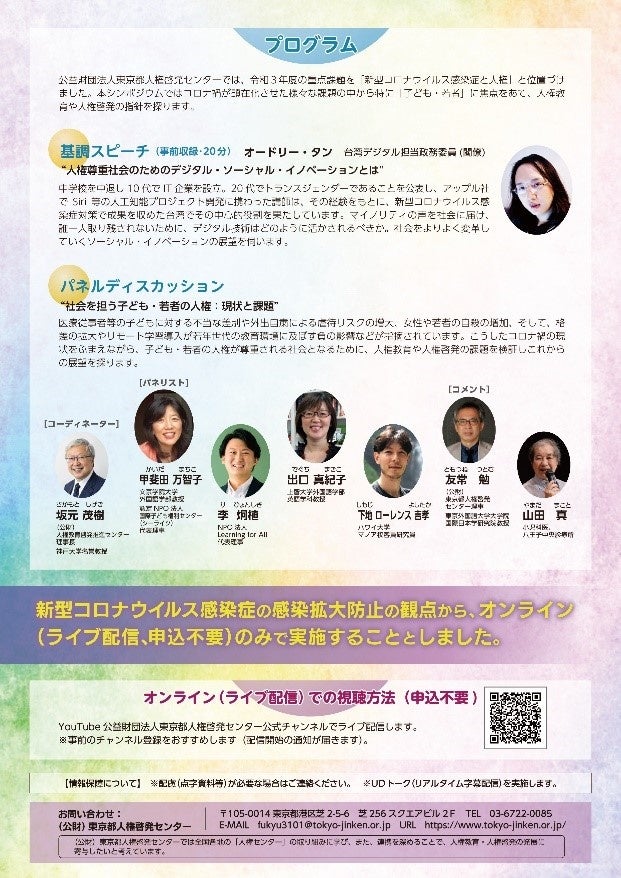 ■視聴方法:YouTube公益財団法人東京都人権啓発センター公式チャンネルでライブ配信