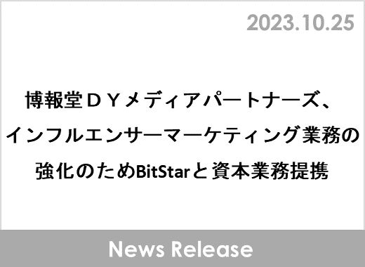 博報堂DYメディアパートナーズ、インフルエンサーマーケティング業務の強化のためBitStarと資本業務提携