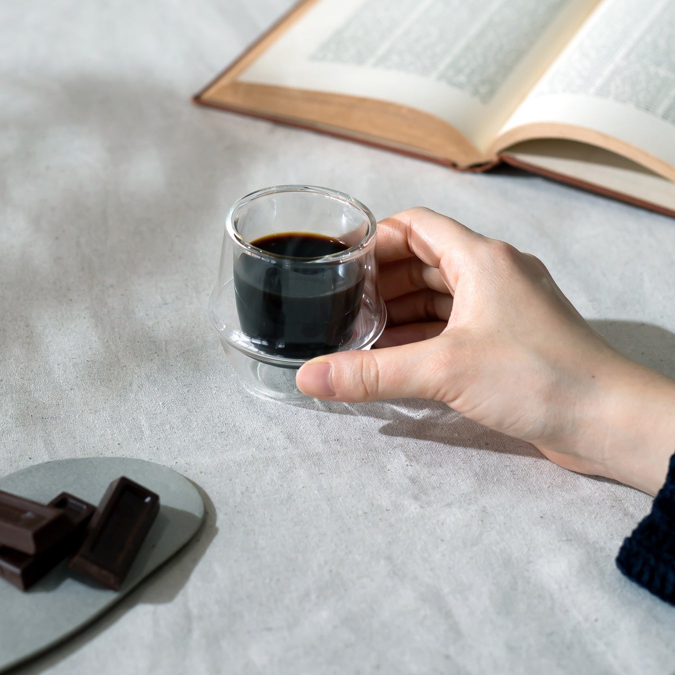 エスプレッソらしい苦みは感じられつつも砂糖が溶けることで甘みが加わり、まろやかな味わいとなって飲みやすくなります。濃厚な苦みのあとにまろやかな甘みが訪れ、ドリップコーヒーとも一味異なるやすらぎを感じられます。