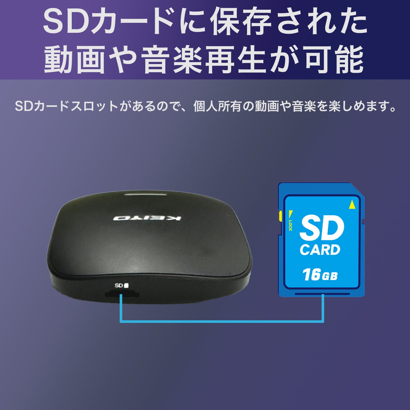 SDカードスロットがあるので、個人所有の動画や音楽を楽しめます