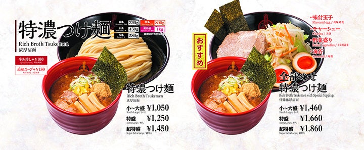 つけ麺の麺量「並・中・大」は同一料金でご注文可能ですので、ワンサイズ大きめをご注文していただきまして、大人と一緒に召し上がっていただくことも大歓迎です♪