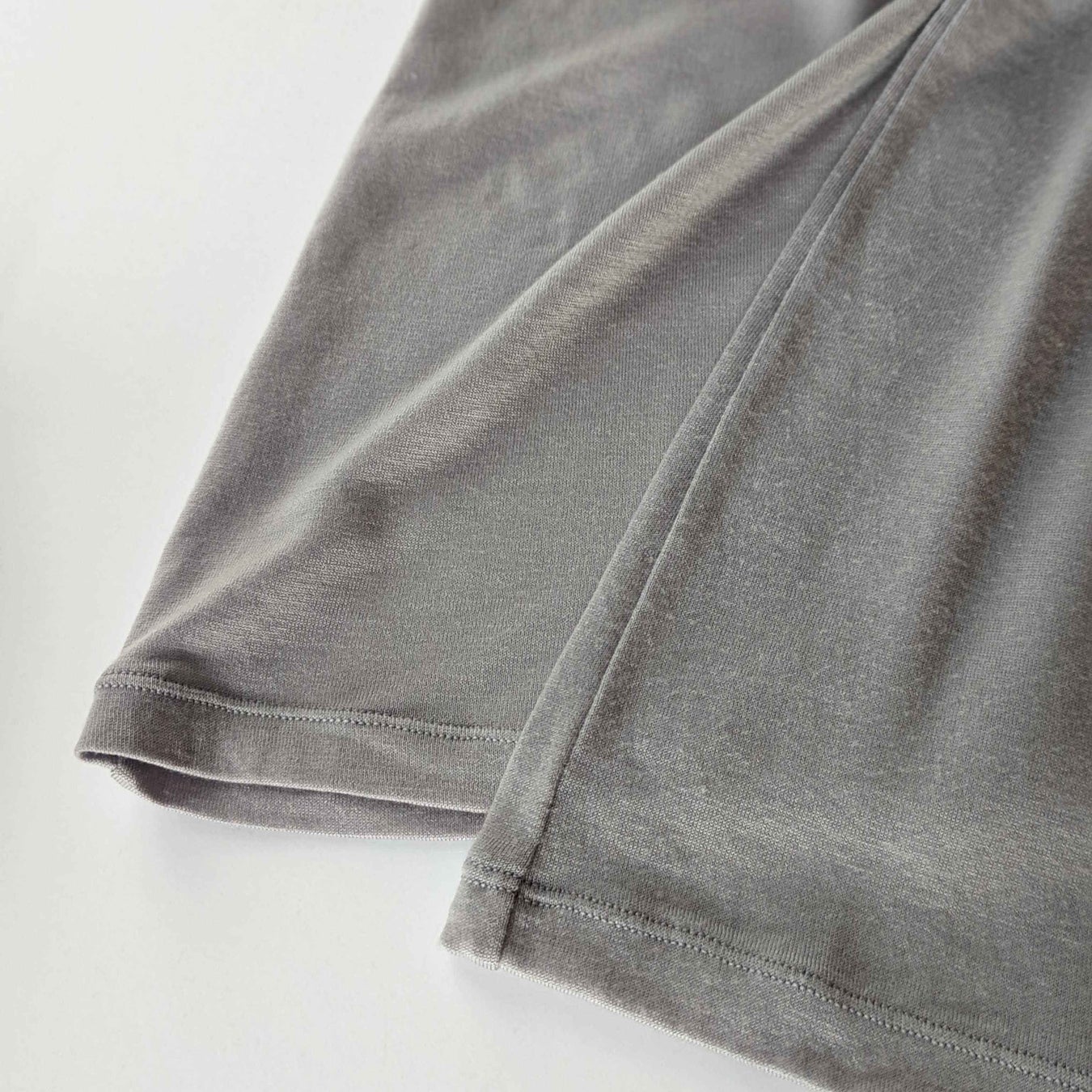 非常にやわらかくとろみのある素材のため、クルーネックの美しいカーブをつくるのも至難の技。