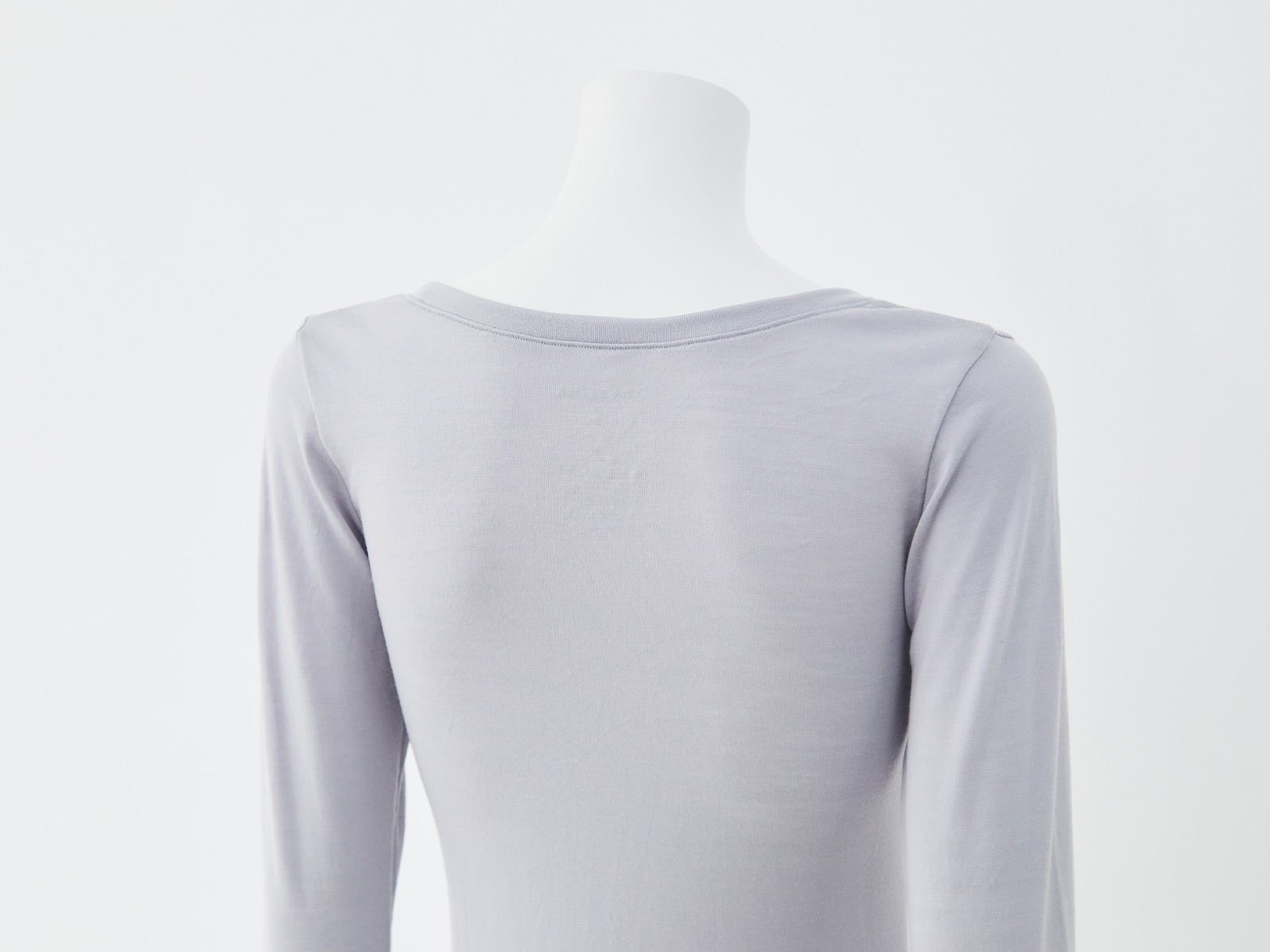 襟元は広すぎず、Vネックでもクルーネックのトップスでも見えないような開きに設定しています。