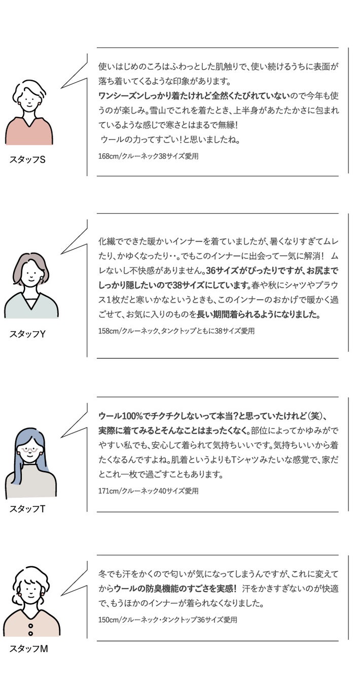 これまでのウールインナー愛用者から寄せられるのは、