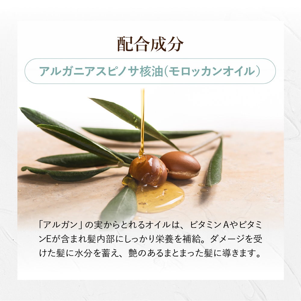 モロッコで生育する「アルガン」の実から採取される天然オイルを配合