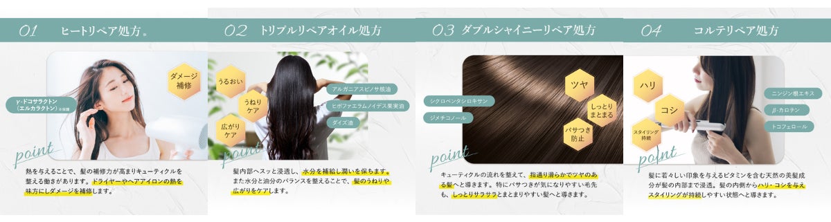 1)翌朝のちゅるんとしたうるおい髪を実現する4つの独自処方