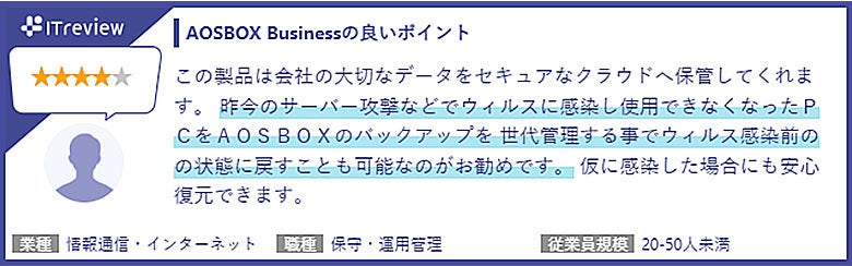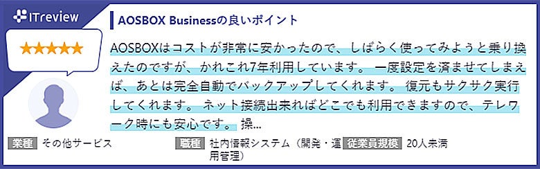 「AOSBOX Business」利用者からの声 (ITreviewより抜粋)